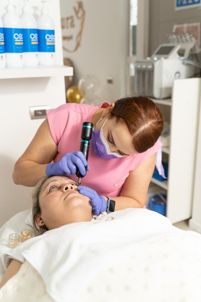Inicialmente se realiza una evaluación de cada caso en particular para determinar el tipo de ojeras y coloración. Existen casos en que puede se recomienda iniciar el tratamiento con ácido hialurónico, para posteriormente corregir la coloración de esta zona con camuflaje (en caso de ojeras hundidas y oscuras en que se quiera corregir tanto profundidad como coloración). Una vez determinada la indicación se procede a realizar el procedimiento, previa anestesia local tópica. Es un procedimiento rápido, indoloro y sin sangramiento, cuyo efecto final puede observarse a los 30-45 días post-tratamiento, una vez finalizado el servicio